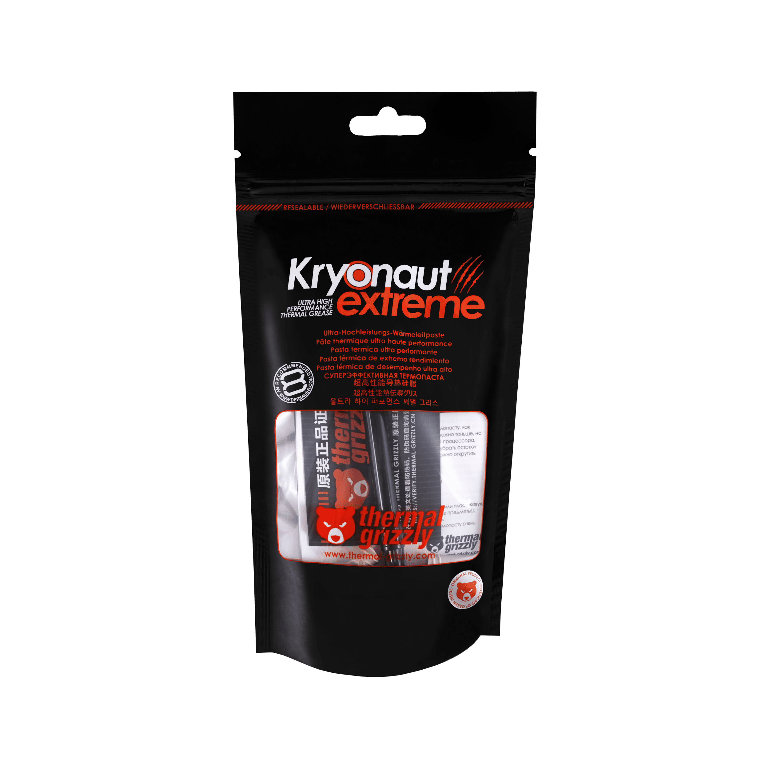 El Grizzly Térmico Kryonaut extreme es una pasta térmica de alto rendimiento basada en nuestra probada pasta termoconductora Kryonaut.
